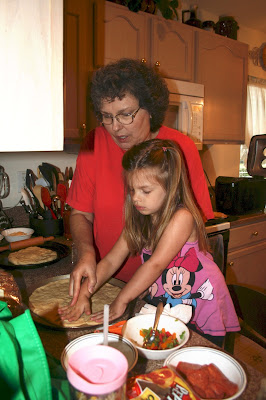 One night my mom showed Morgan how to make pizza.